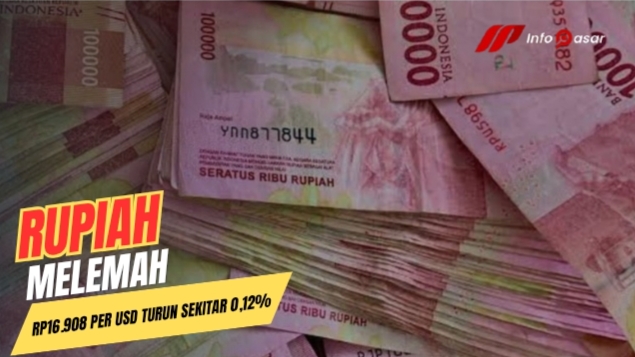 Menurut data perdagangan, rupiah sempat melemah hingga sekitar Rp16.908 per USD pada pasar spot pagi ini, turun sekitar 0,12% dibandingkan perdagangan sebelumnya.